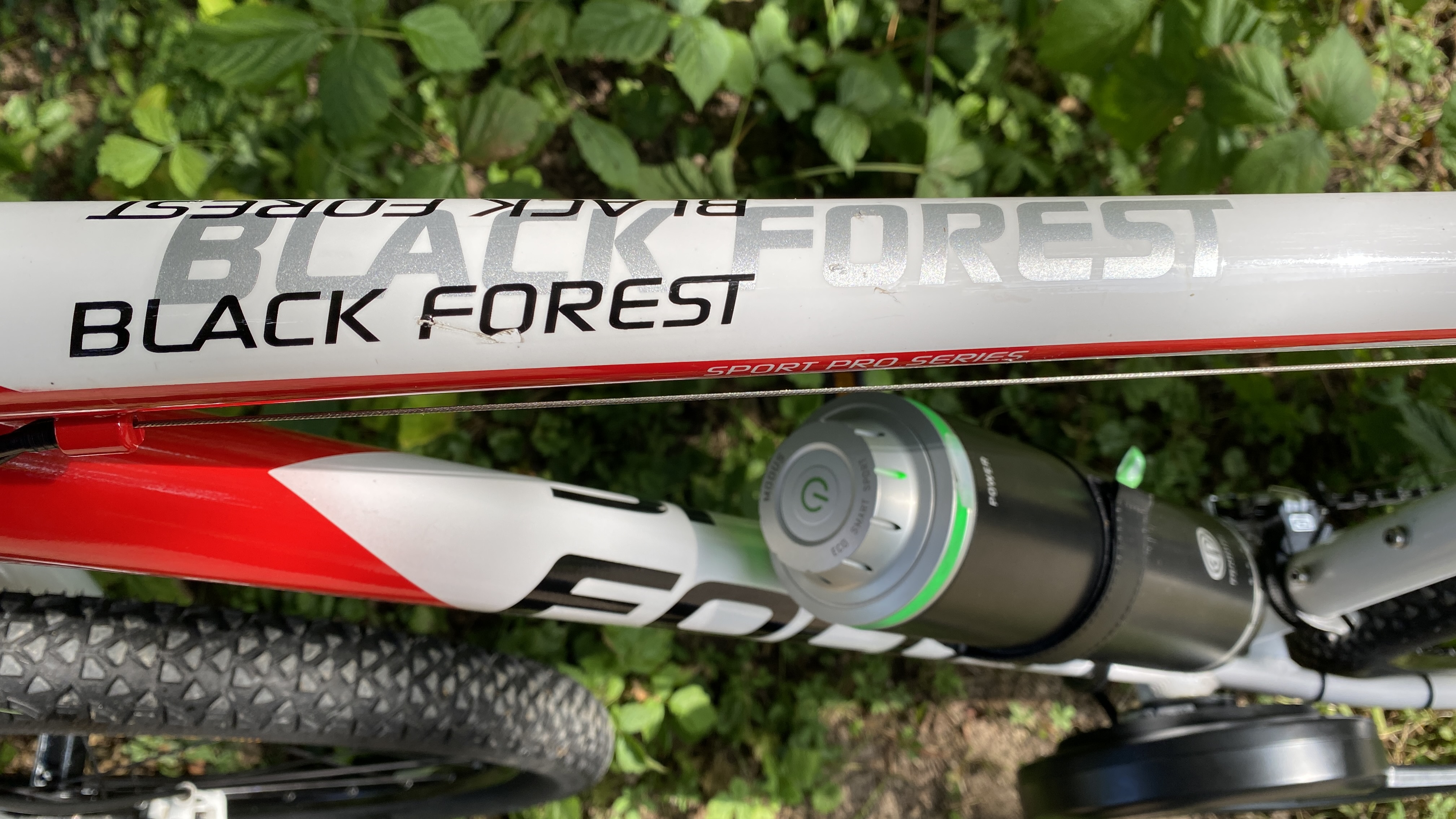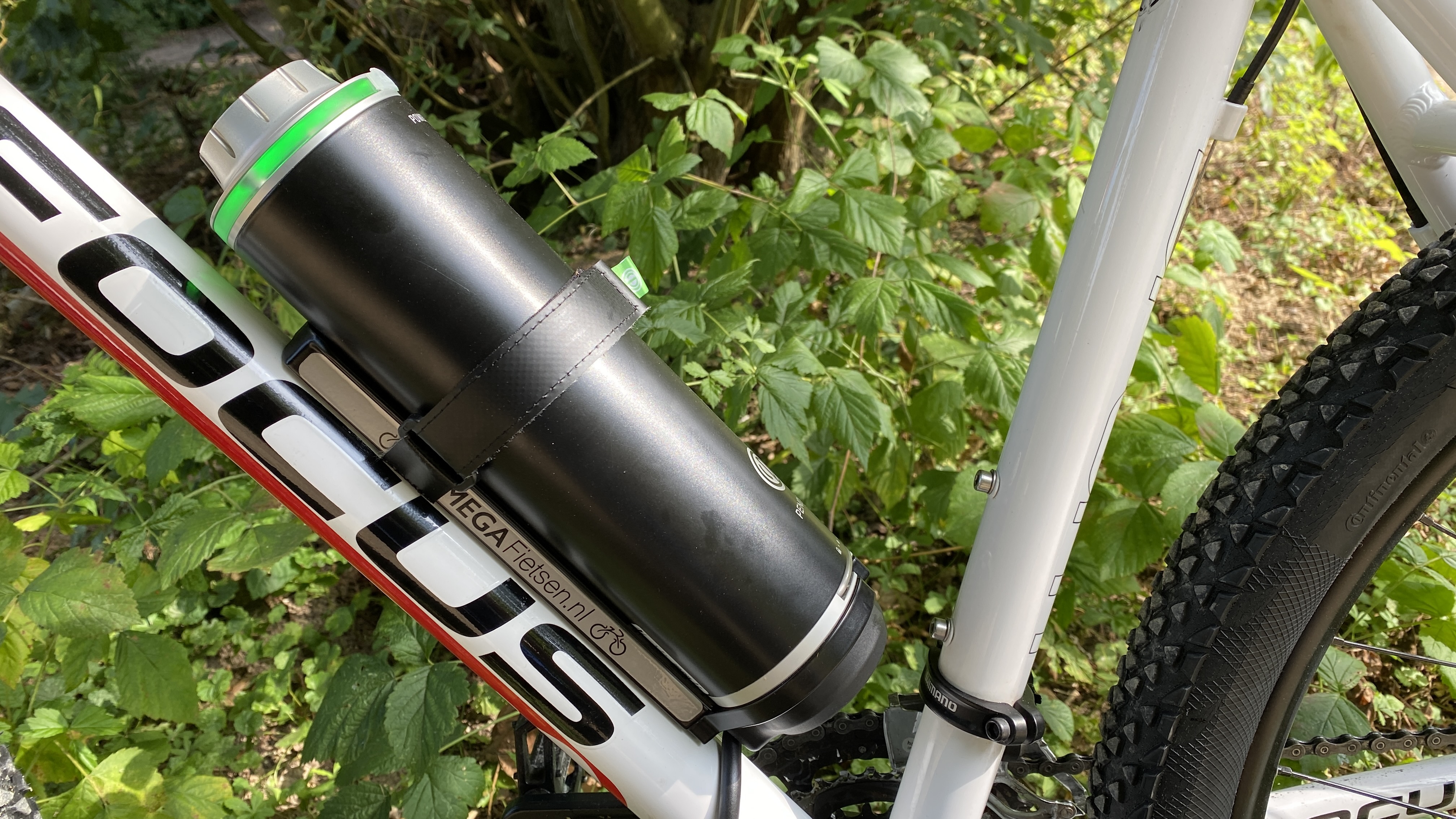- Accu houder gemonteerd op de plaats van de originele bidonhouder.