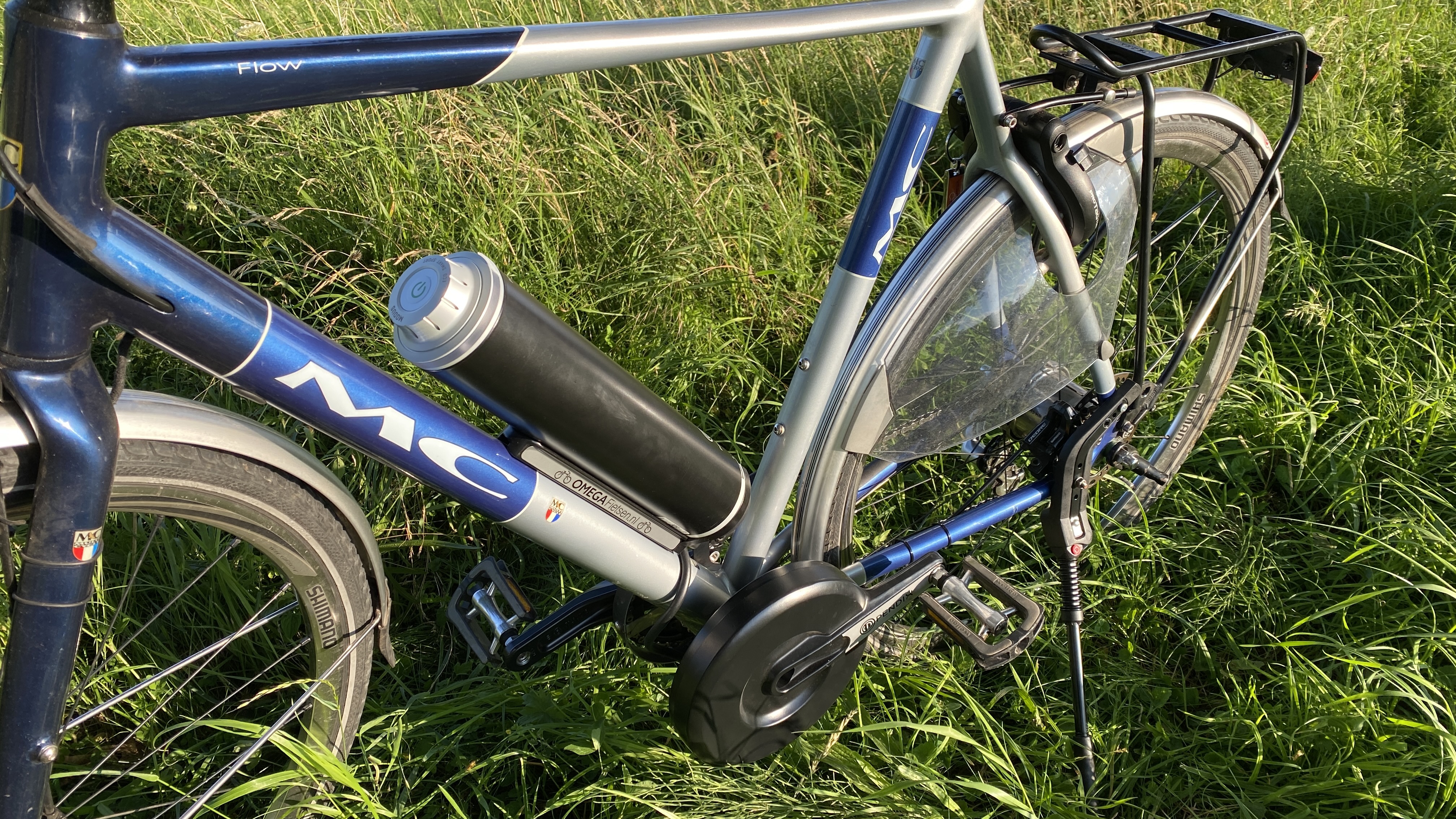 - Accu houder gemonteerd op de plaats van de originele bidonhouder